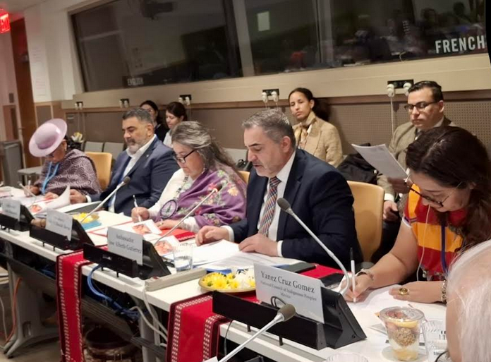 United Nations, New York — Indigenous leaders, peacebuilders, UN, nations and allies from around the world gathered on April 24 and 25, 2025, during two pivotal side events at the United Nations Permanent Forum on Indigenous Issues (UNPFII) to advance Indigenous-led peacebuilding efforts globally. The two events — “Indigenous Peacebuilding: Pathways towards Healing People, for Peace and Planet” and “Global Strategy Meeting for International Decade of Indigenous Humanitarian Peacebuilding 2025-2035” — resulted in landmark decisions and declarations that will guide Indigenous peace work for generations to end wars and conflicts globally. Currently 107 wars are raging in the world displacing 200 million people globally and 80 percent of the conflicts are happening in biodiversity regions of world where Indigenous Peoples live. Key outcomes of the landmark events included: